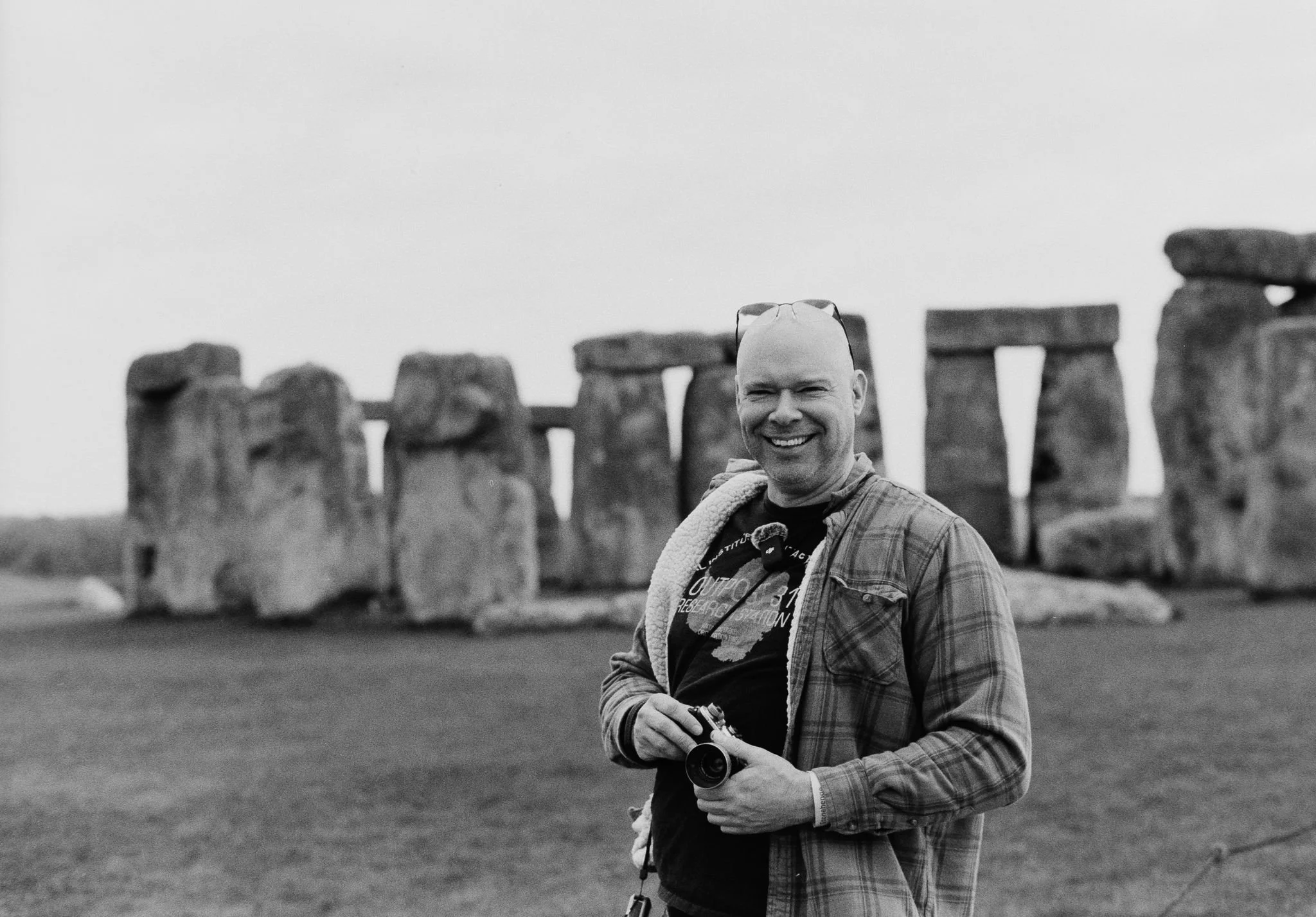 Me caught at Stonehenge by Aaron with my trusty 1935 Leica. I have no doubt that Stonehenge, the Leica, and even I will outlive 99.99% of every digital photo ever taken today. I love this film, which is Ilford Ortho 80.